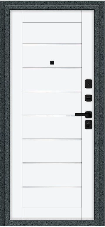 Надежная входная Дверь Браво Техно/SBlack Старк антрацит/White Silk премиум класса по цене 35 657 руб. Большая толщина стали защитит от проникновения в ваш дом, квартиру или коттедж. Используется очень качественная фурнитура: замки, цилиндры, ручки, защелки. Покрытие и отделка двери изготовлено под внимательным контролем производителя. Дверь имеет долгий срок службы и гарантию.